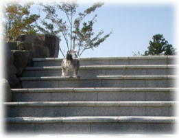 | ポーズもつけてみたよ | 展望台の階段怖いです(;.;) | ご主人様に抱っこで登ったの | 高いなぁ〜 | え、なぁ〜に? |