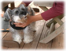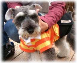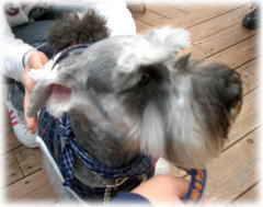 | まろん君、お兄さんのお膝でうっとり♪ |